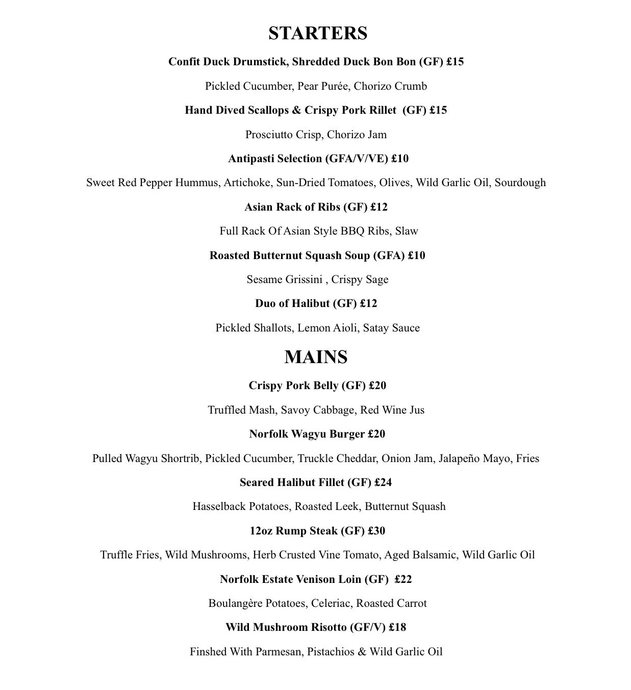 Please note these are sample menus. Our Menu changes frequently with exciting new dishes we know you will love! Always proud to serve fresh and local produce